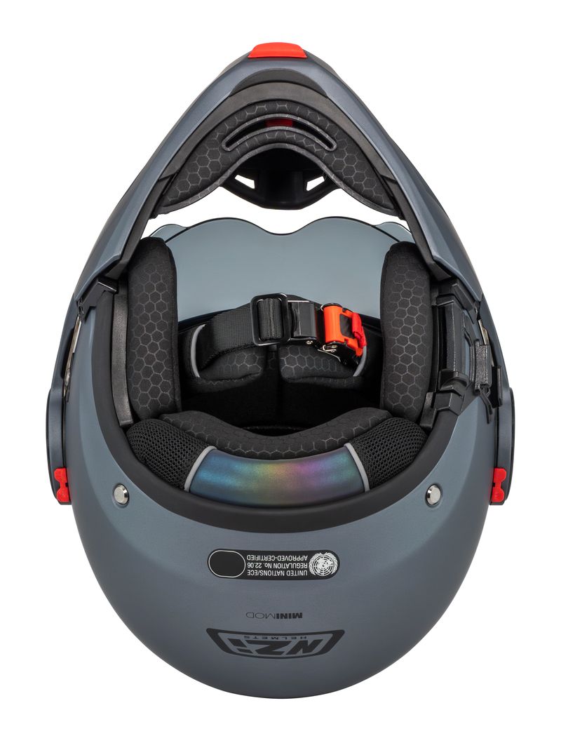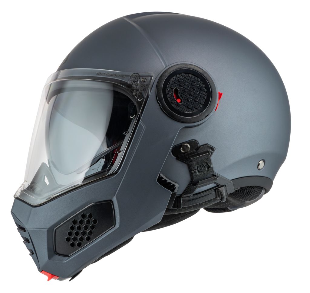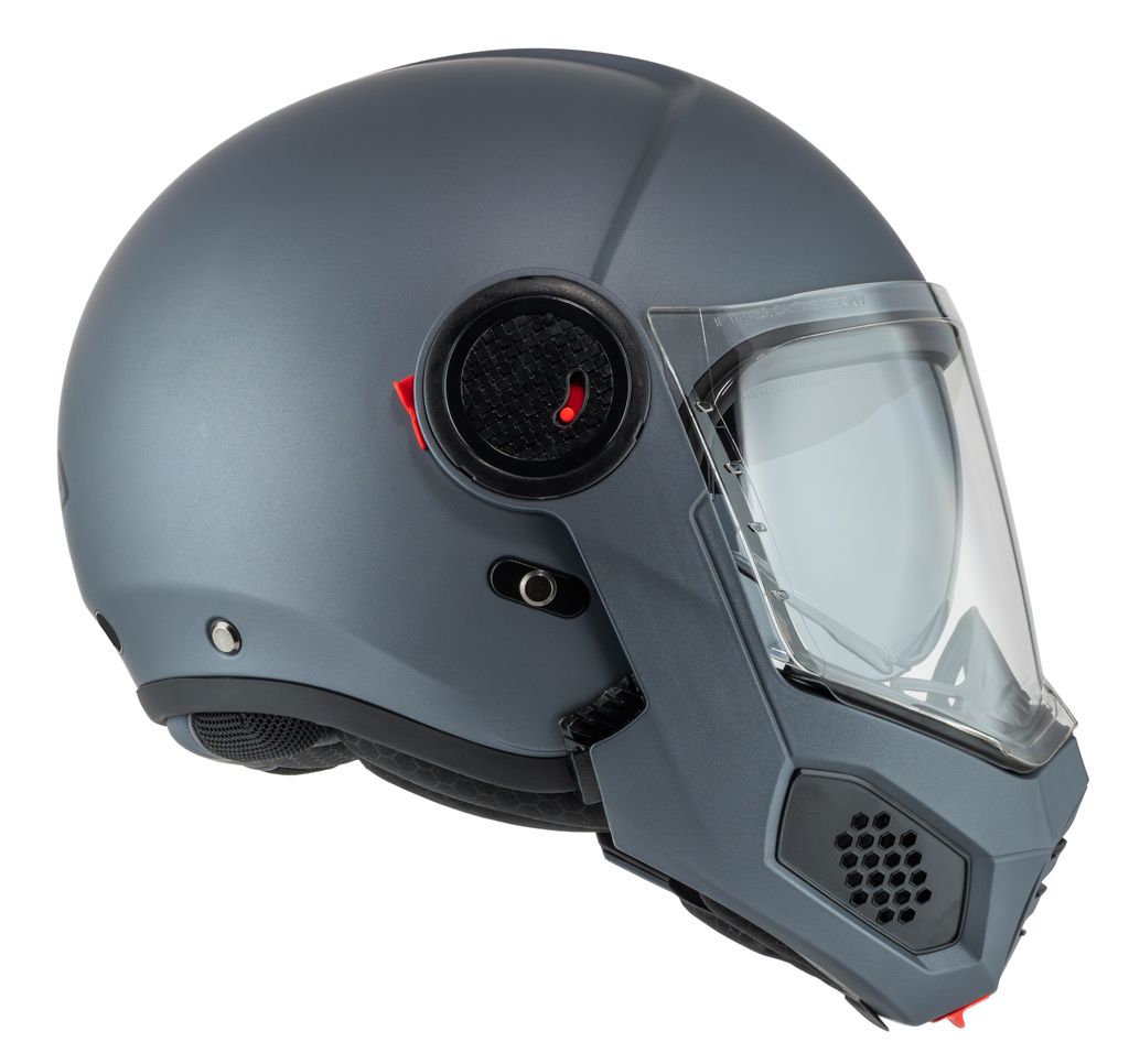 Med ett enkelt knapptryck fälls hakpartiet upp, vilket ger bättre ventilation och smidighet vid stopp eller lugn stadskörning.