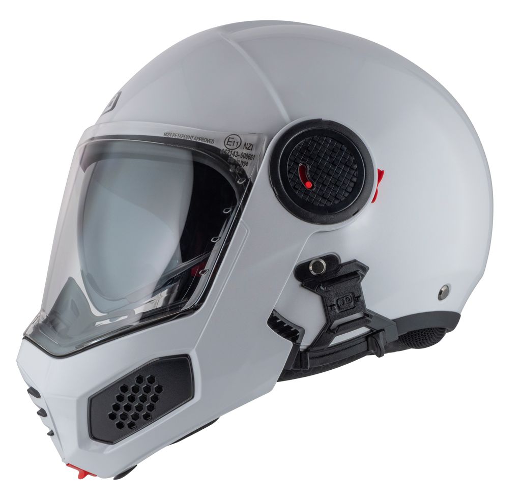 Den smarta uppfällbara konstruktionen gör att du enkelt kan växla mellan integralhjälm och öppen hjälm.