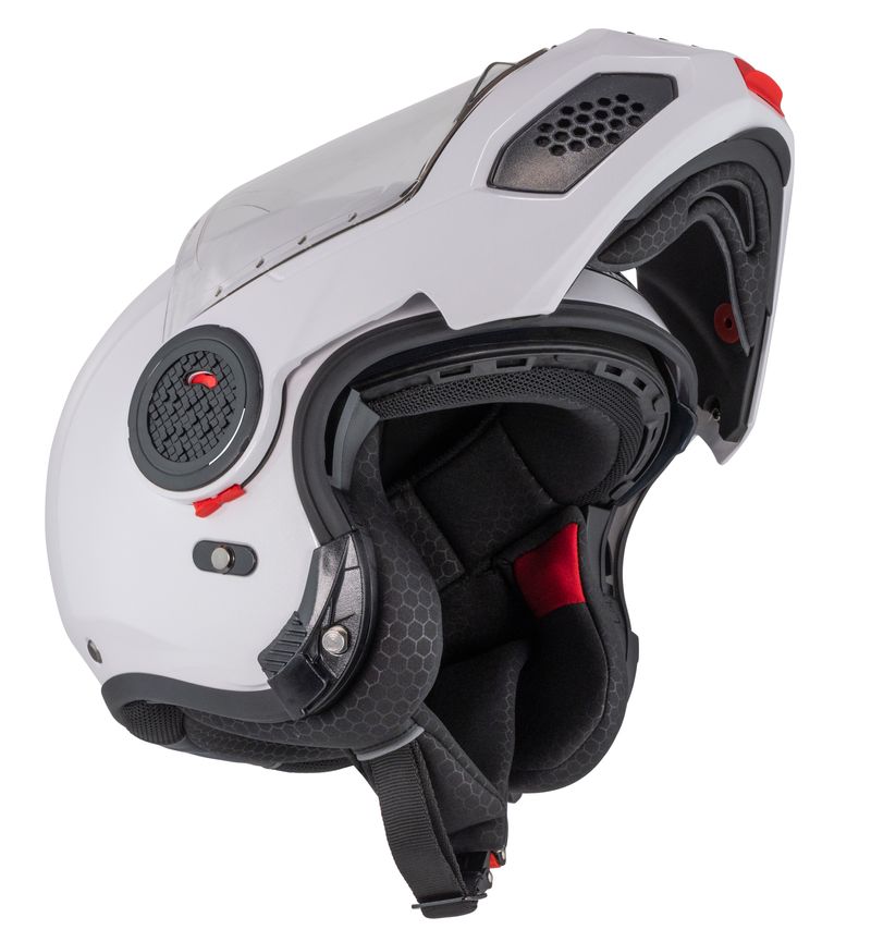 Med ett enkelt knapptryck fälls hakpartiet upp, vilket ger bättre ventilation och smidighet vid stopp eller lugn stadskörning.