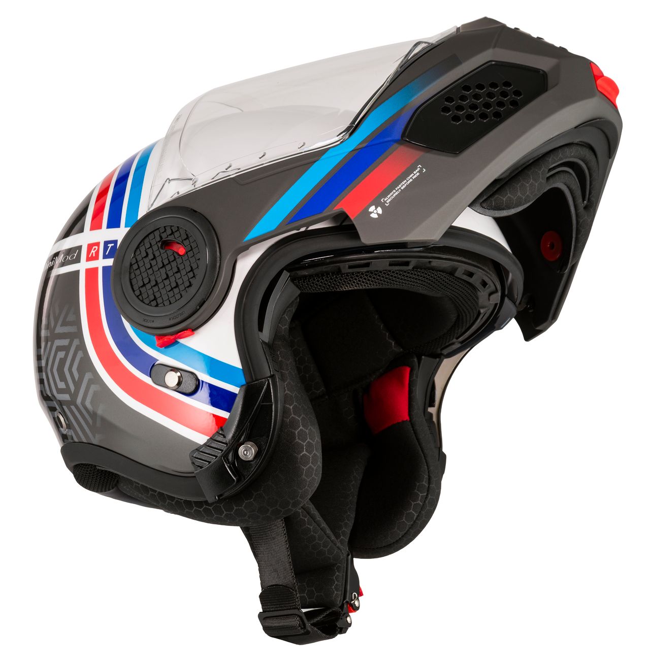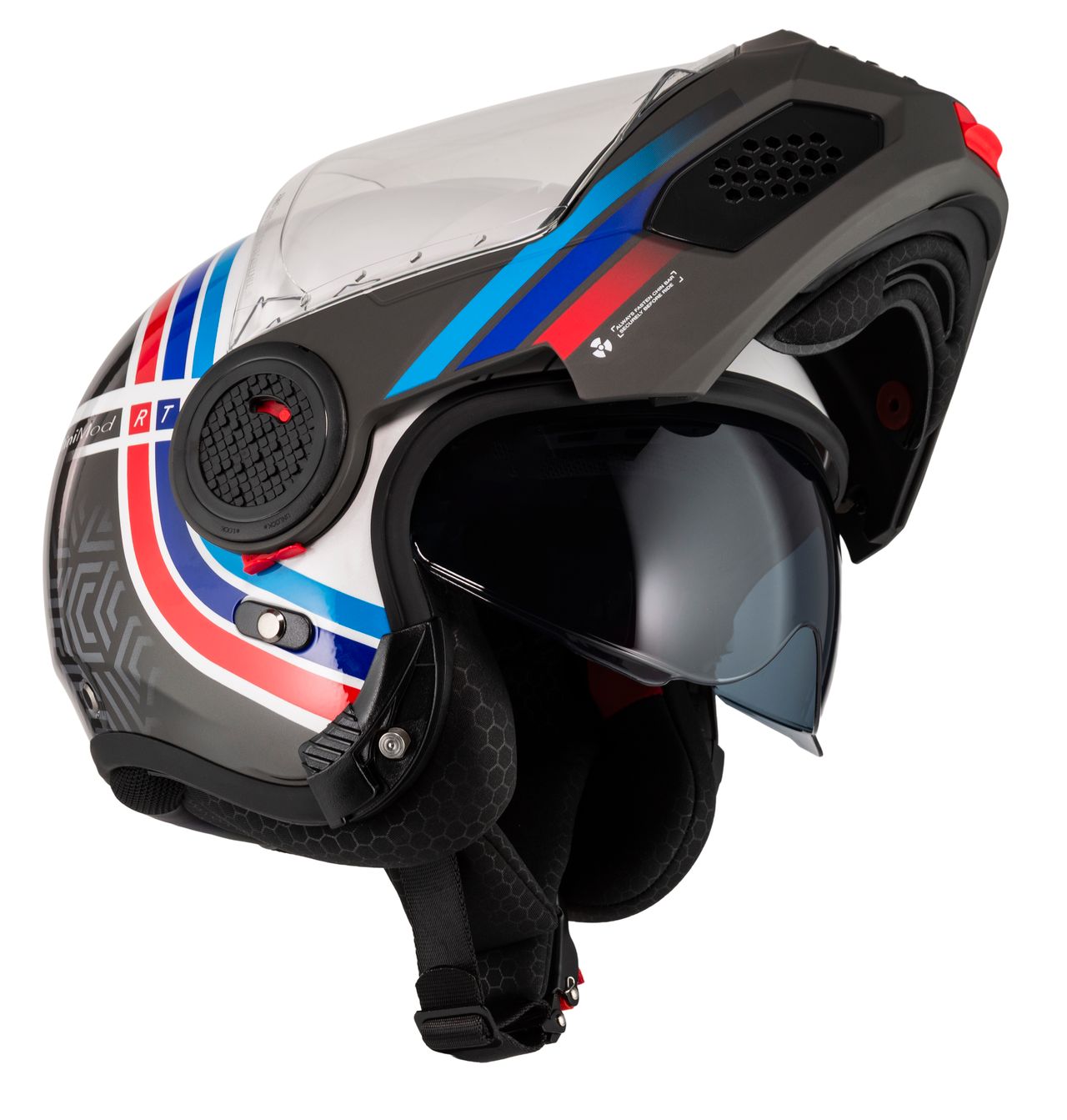 Tack vare dubbel P/J-certifiering enligt ECE 22.06 kan du köra tryggt både med hakpartiet stängt på motorvägen eller uppfällt i stadstrafik.