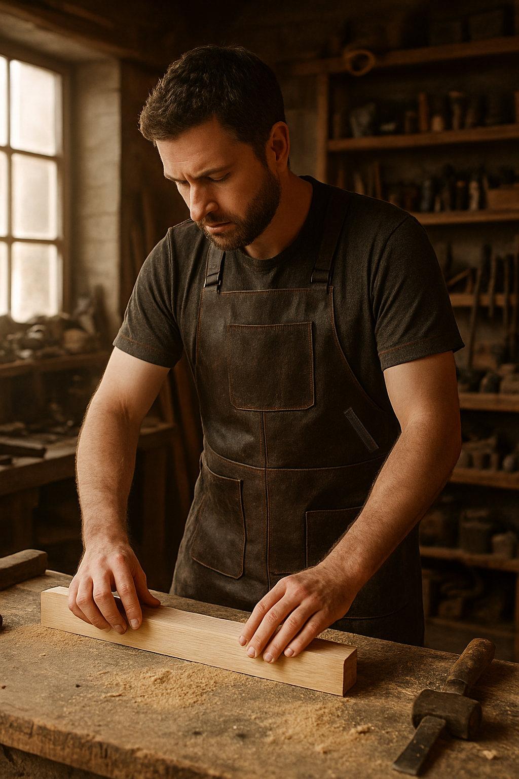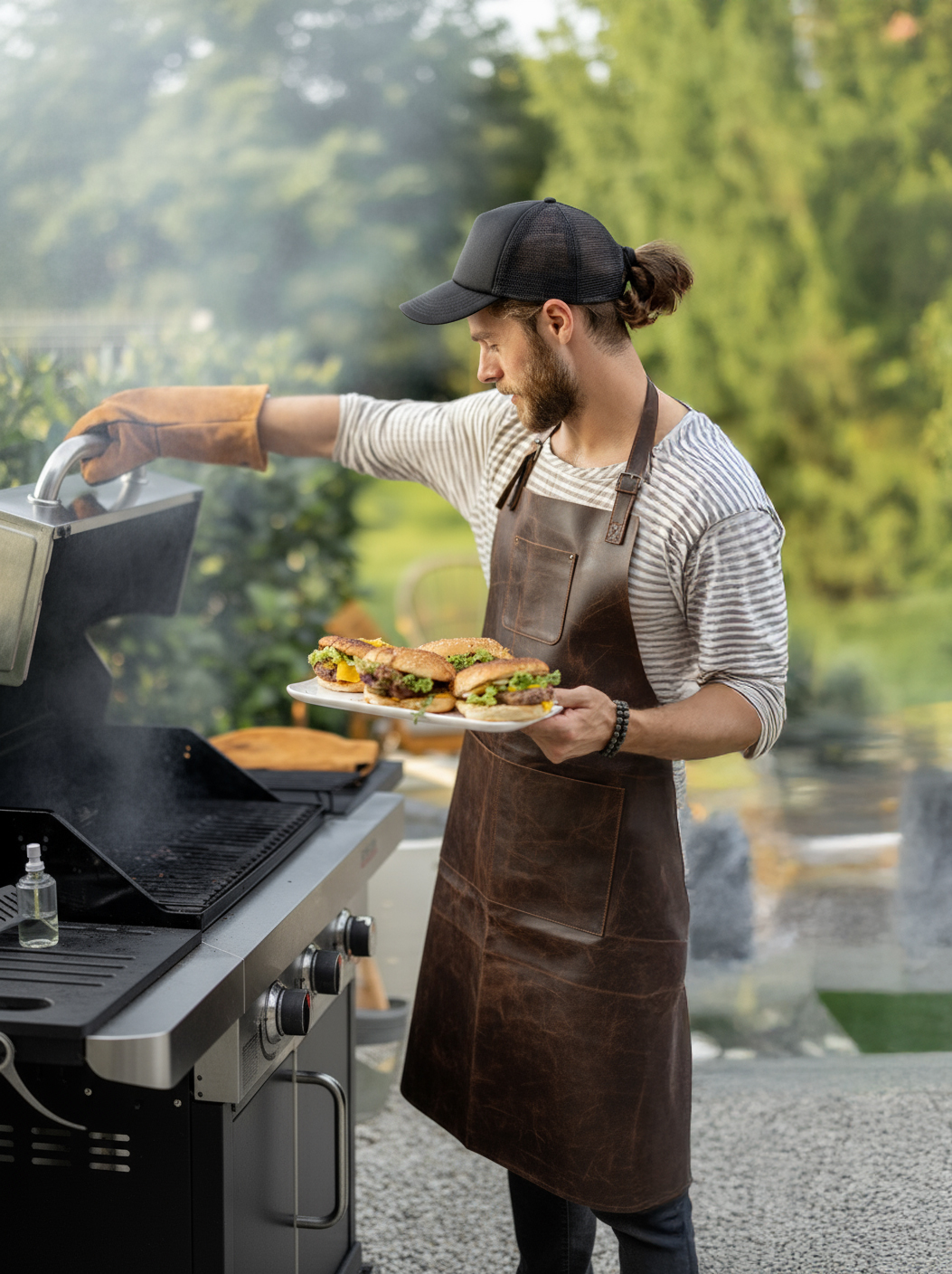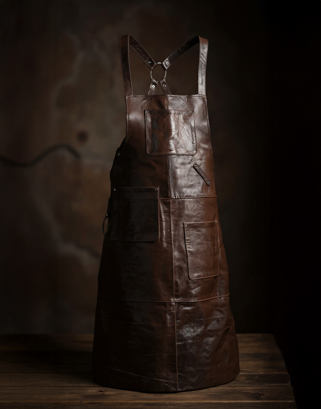 • Den extra mjuka vaxade skinnkvaliteten gör att förklädet följer alla dina rörelser och ger en bekväm passform för att underlätta dina uppgifter i köket eller på grillen.