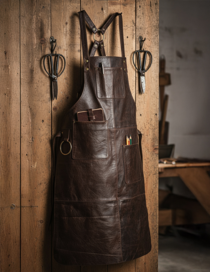 Det är lätt att se att detta förkläde inte bara är användbart, det är också en stilren accessoar som du kommer att älska att ha på dig. Med sin djupa, vackra bruna färg blir det bara snyggare med tiden.