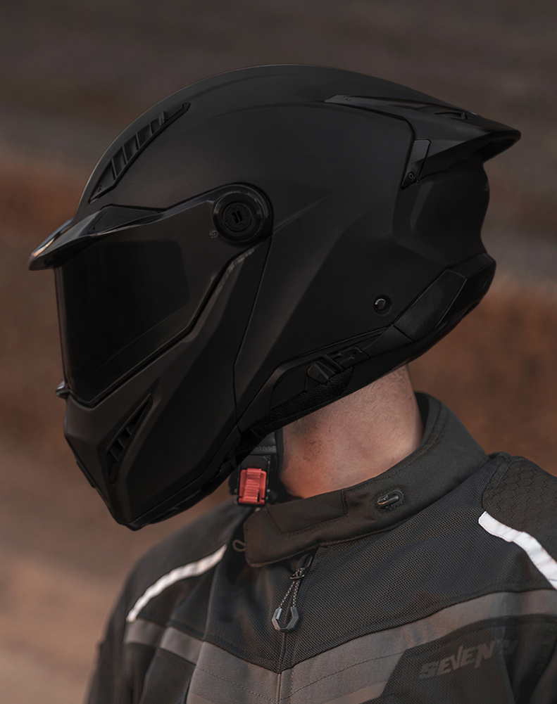Ghost Dark Edition 22-06 är en modern modulhjälm utvecklad för förare som söker maximal säkerhet, komfort och flexibilitet i en och samma hjälm. Den smarta flip-up konstruktionen gör det möjligt att snabbt växla mellan integralhjälm och öppen hjälm, vilket gör den perfekt både för touring, pendling och stadskörning.