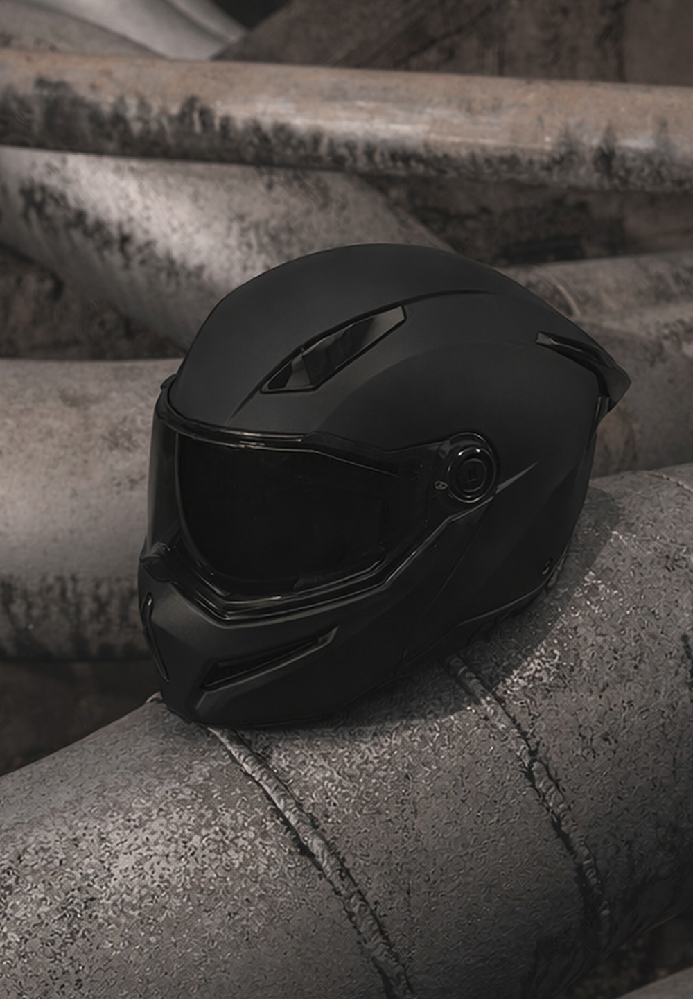 Ghost Dark Edition 22-06 är en banditformad flip-up hjälm med en tuff street-inspirerad design och modern funktionalitet. Den aggressiva formen ger hjälmen ett rått och stilrent uttryck samtidigt som den modulära konstruktionen gör den praktisk för både stadskörning och längre turer. Hjälmen är utrustad med en avtagbar solskärm som minskar bländning och ger en extra aggressiv look, samtidigt som den aerodynamiskt formade hjälmen och visiret hjälper till att förbättra luftflödet och stabiliteten under körning. Med fokus på komfort, ventilation och passform är hjälmen utvecklad för att vara bekväm att bära även under längre körningar.