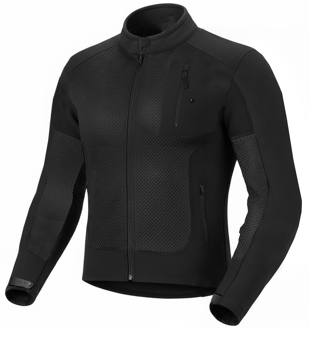Den här bröstpanelen i mesh-look är designad för att ge jackan en teknisk, sportig och modern karaktär. Även om panelen ger ett ventilerat uttryck är själva jackan vind- och vattentät, vilket gör den optimal för körning i alla väder. Bröstfickan med dragkedja är placerad för snabb och enkel åtkomst till mobil, kort eller nycklar utan att du behöver öppna jackan. Under designpanelen sitter dessutom ett premium uttagbart innerfoder, vilket gör jackan flexibel — varm när du behöver det, och lättare när du vill ha maximal rörelsefrihet.