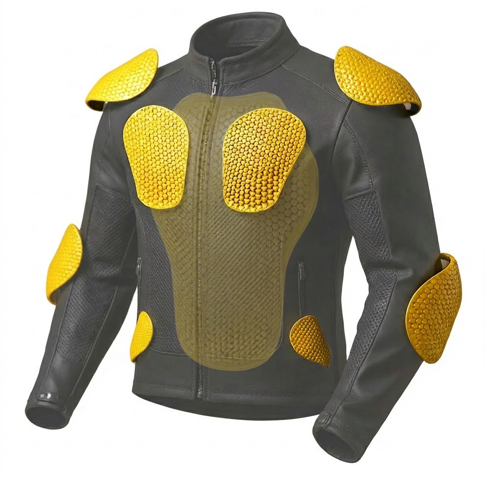 Ryggrad, bröst, axlar, revben och armbågar.Skydden är mjuka och följsamma när du rör dig, men stelnar vid slag för att absorbera och sprida kraften vid en kollision. Det ger en perfekt kombination av säkerhet och rörelsefrihet — du får samma skyddsnivå som i en motorcykeljacka, men i form av en stilren hoodie. Detta är Premium MC-skydd som är anpassade efter kroppens form, sitter på plats och ger dig trygghet varje gång du kör.