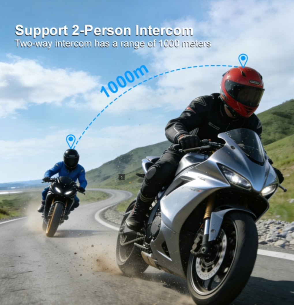 • Koppla 2 enheter för grupp interkom med 500-800 meters räckvidd.